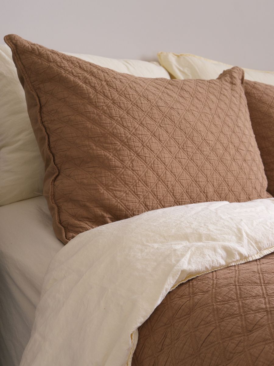 Покрывало с наволочками LIMASSO CAMBRIDGE. Покрывало и наволочки изготовлены из хлопковой ткани с геометрическим жаккардовым узором. Покрывало и наволочки плотные, износостойкие в использовании и приятные на ощупь.